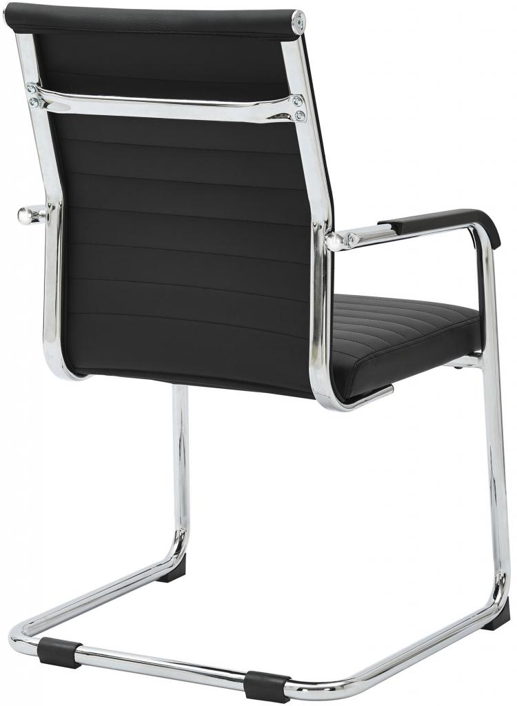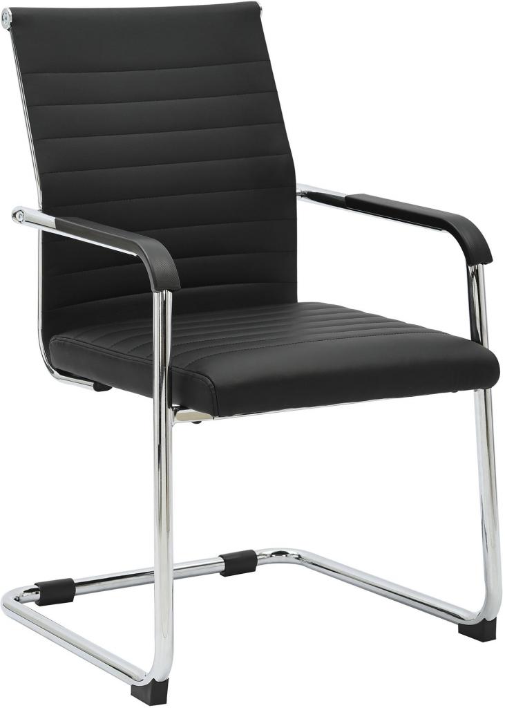 Met zijn hoogwaardige zwarte PU-leer geeft de Haakon elke ruimte een moderne en stijlvolle uitstraling. De stevige, zwarte kunststof armleuningen bieden extra comfort en ondersteunen een ergonomische zithouding. Het verchroomde metalen frame zorgt niet alleen voor stabiliteit, maar ook voor een duurzame kwaliteit, zelfs in druk bezochte ruimtes.